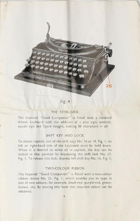 Imperial 'Good Companion' Portable Typewriter Instruction Book