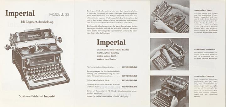 Faltprospekt für Schreibmaschine Imperial 55 Die moderne Büroschreibmaschine mit den einzigartigen Vorteilen
