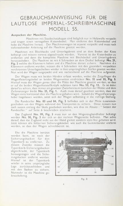 Imperial Schreibmaschine Modell 55 Anleitung