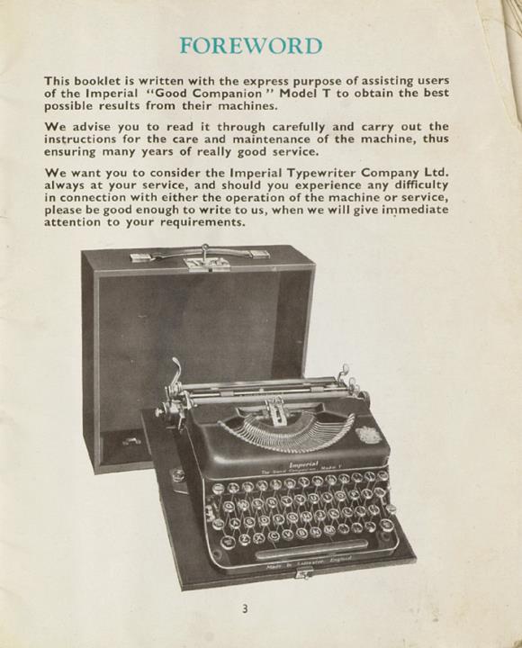 Bedienungsanleitung für tragbare Schreibmaschine Imperial Good Companion T the most complete portable typewriter Nr. A580