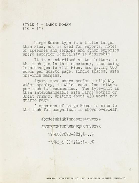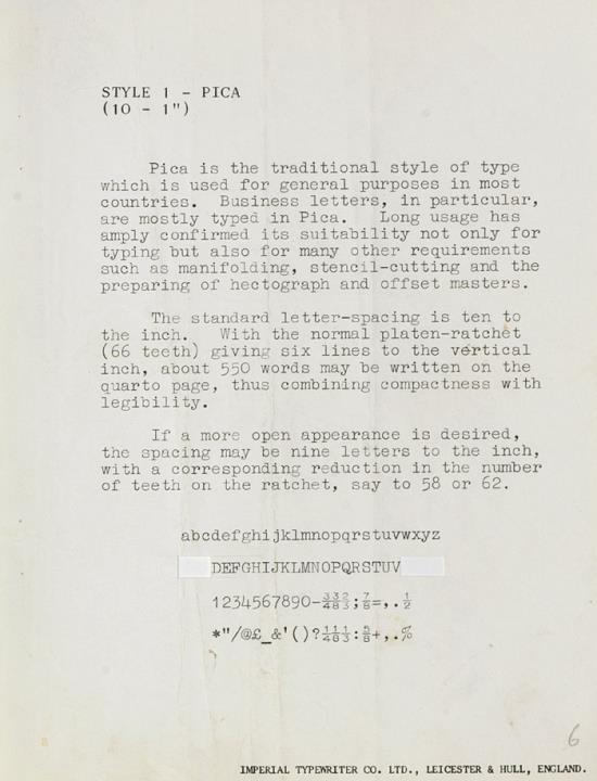 Schriftartenverzeichnis für Schreibmaschine Imperial Nr. A.801. mit Datumstempel versehen