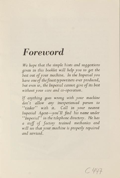 Pflegeanleitung für Schreibmaschine Imperial Nr. A724
