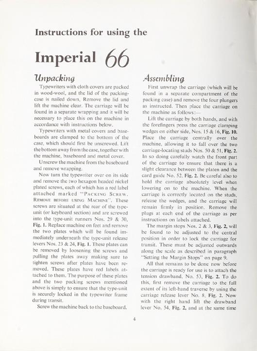 Bedienungsanleitung für Büroschreibmaschine Imperial 66 Nr. T41 March 62