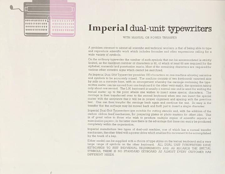 Prospekt für Büroschreibmaschine Imperial mit Zweifachtastatur (Doppelgänger) Nr. A893
