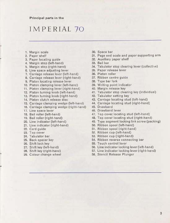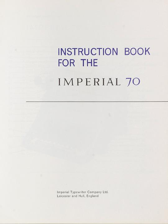 Bedienungsanleitung für Büroschreibmaschine Imperial 70 Nr. T40