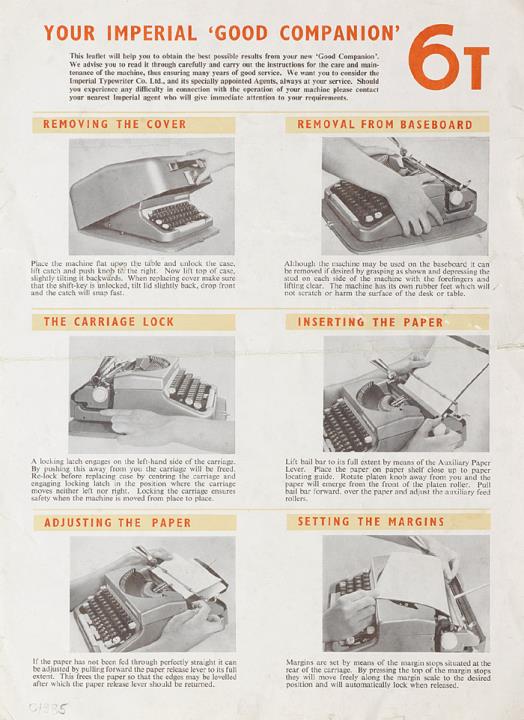 Bedienungsanleitung für tragbare Schreibmaschine Imperial Good Companion 6T Nr. REF.T8