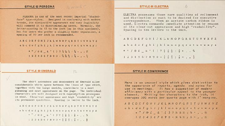 A Selection of Popular Type Styles für Imperial Typewriters