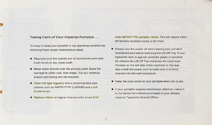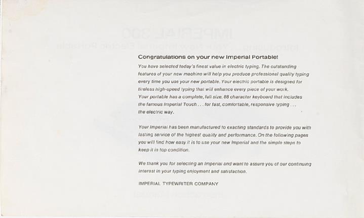 Bedienungsanleitung für elektrische Kleinschreibmaschine Imperial 300 Introducing...Your New Imperial Electric Portable Nr. CPM-69-261
