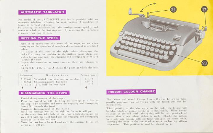 Bedienungsanleitung für Schreibmaschine Japy Beaucort Script Nr. 2540