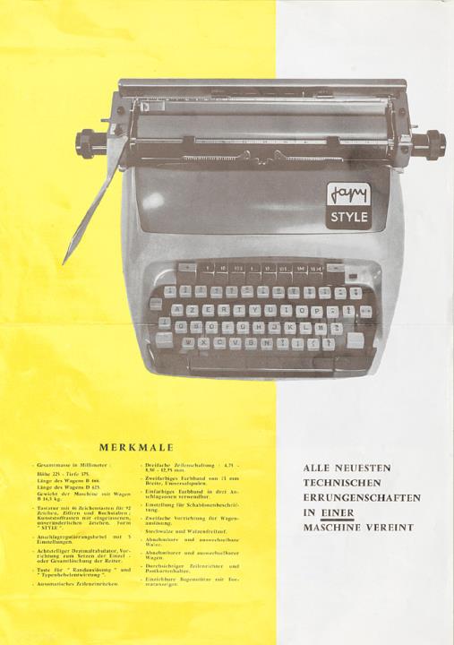 Next to literature on the history of technology, of the typewriter and the office, the Archive holds patent letters, textbooks and instruction manuals as well as historical postcards, letters, photographs and various kinds of advertising (leaflets and brochures, advertising stamps, newspaper ads, posters and signs, promotional gifts).