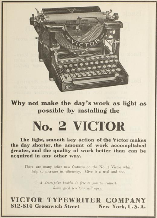 Werbeanzeige für Schreibmaschine Victor 2 monochrom