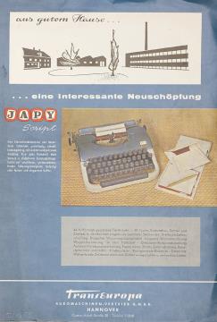 Prospekt für Schreibmaschine Japy Script aus gutem Hause...eine interessante Neuschöpfung
