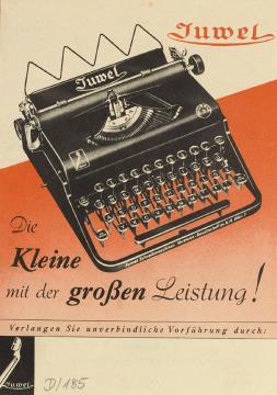 Prospekt für Schreibmaschine Juwel Mod. 3 Konkurrenzlos in ihrer Art
