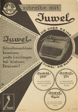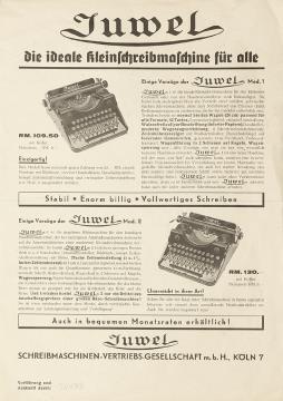 Prospekt für Schreibmaschine Juwel Mod. 1 und 2