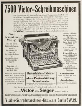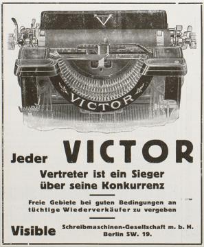 Werbeanzeige für Schreibmaschine Victor monochrom