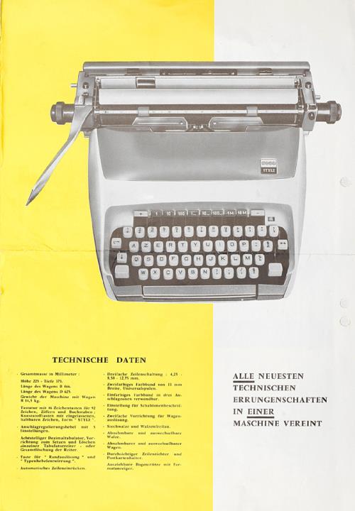 Next to literature on the history of technology, of the typewriter and the office, the Archive holds patent letters, textbooks and instruction manuals as well as historical postcards, letters, photographs and various kinds of advertising (leaflets and brochures, advertising stamps, newspaper ads, posters and signs, promotional gifts).