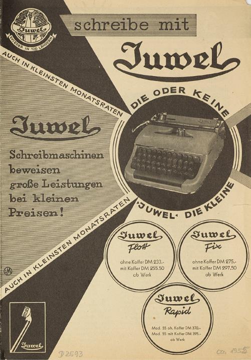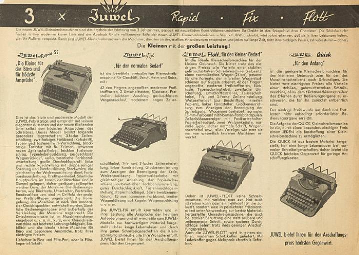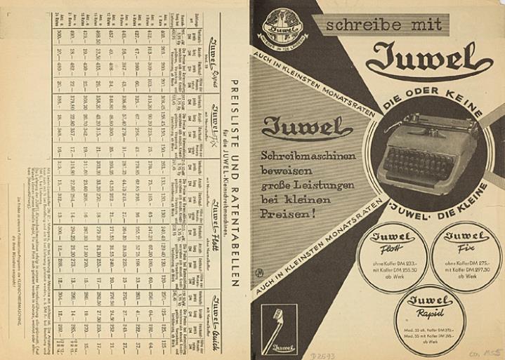 Faltprospekt für Schreibmaschine Juwel mit Preisliste und Ratentabelle Die oder Keine Juwel die Kleine