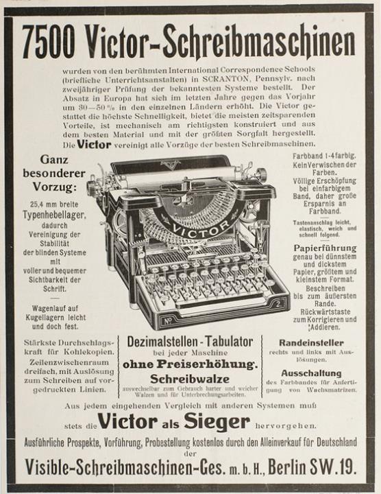 Werbeanzeige für Schreibmaschine Victor monochrom