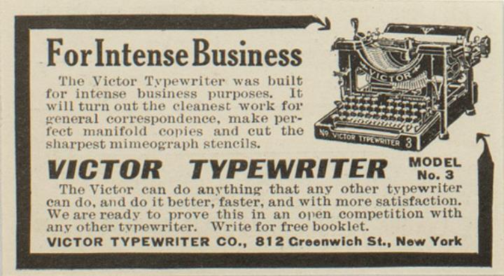 Werbeanzeige für Schreibmaschine Victor monochrom