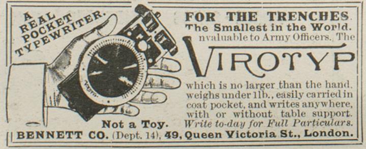 Werbeanzeige für Schreibmaschine Virotyp monochrom