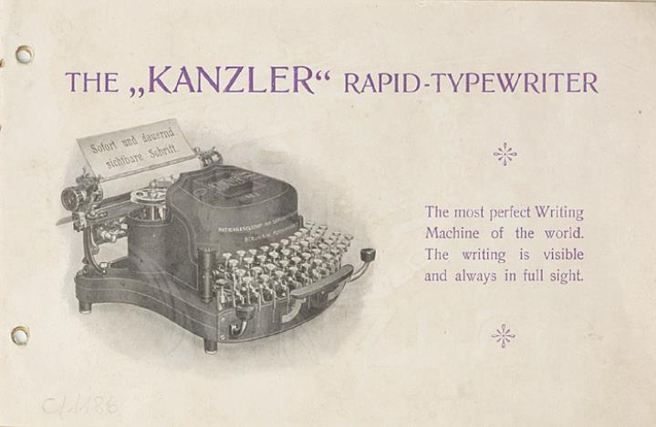 Next to literature on the history of technology, of the typewriter and the office, the Archive holds patent letters, textbooks and instruction manuals as well as historical postcards, letters, photographs and various kinds of advertising (leaflets and brochures, advertising stamps, newspaper ads, posters and signs, promotional gifts).
