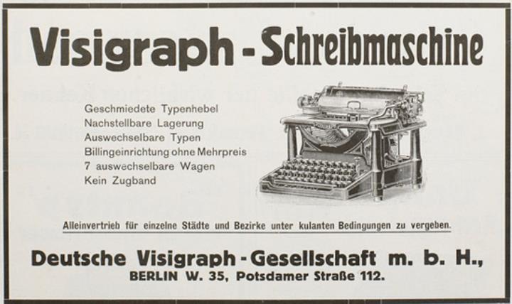 Werbeanzeige für Schreibmaschine Visigraph monochrom