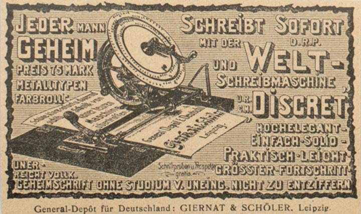 Jeder Mann schreibt sofort mit der Geheim- und Welt-Schreibmaschine Discret