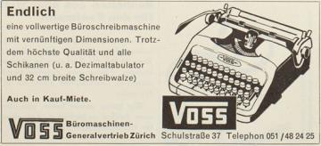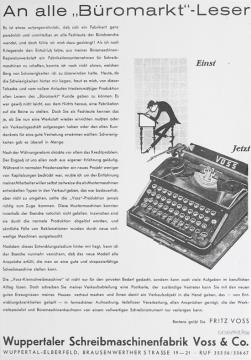 Werbeanzeige für Schreibmaschinen Voss monochrom
