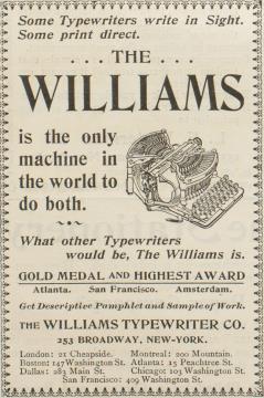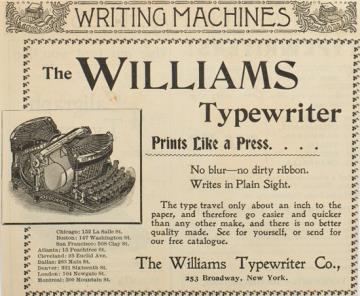 Werbeanzeige für Schreibmaschine Williams monochrom