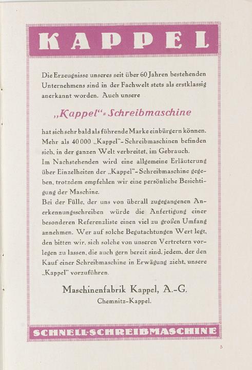 Prospekt und Bedienungsanleitung für Schreibmaschine Kappel 2