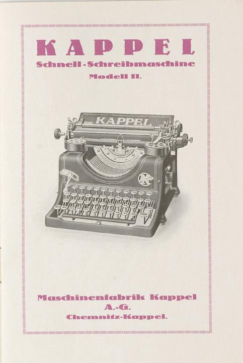 Prospekt und Bedienungsanleitung für Schreibmaschine Kappel 2 Beilage: Schweizer Universal-Tastatur