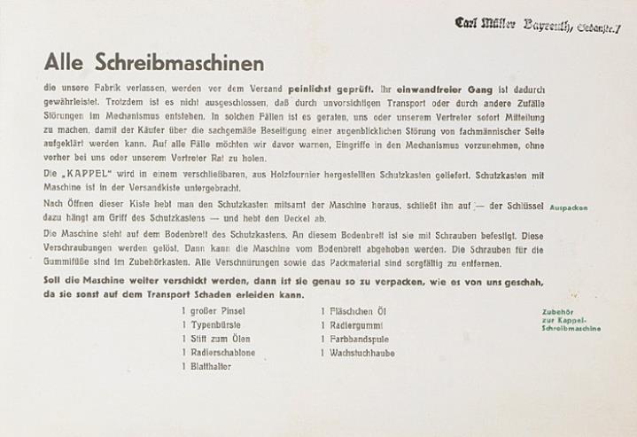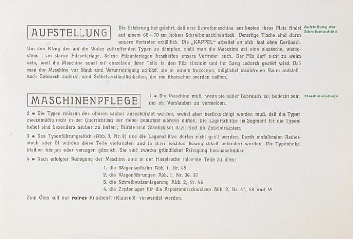 Gebrauchs-Anweisung für die Kappel Standard-Schreibmaschine
