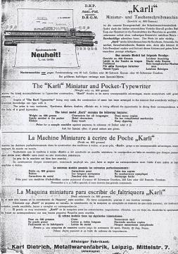 Prospekt viersprachig für Schreibmaschine Karli Fotokopie