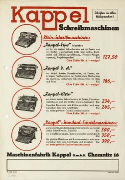 Prospekt für Schreibmaschine Kappel Nos modéles 1938