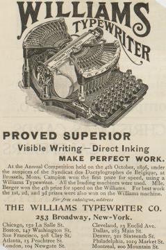 Werbeanzeige für Schreibmaschine Williams; auf Karton geklebt monochrom