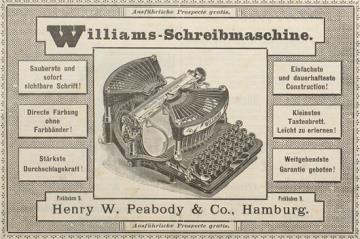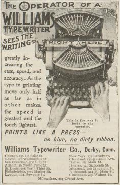 Werbeanzeige für Schreibmaschine Williams monochrom