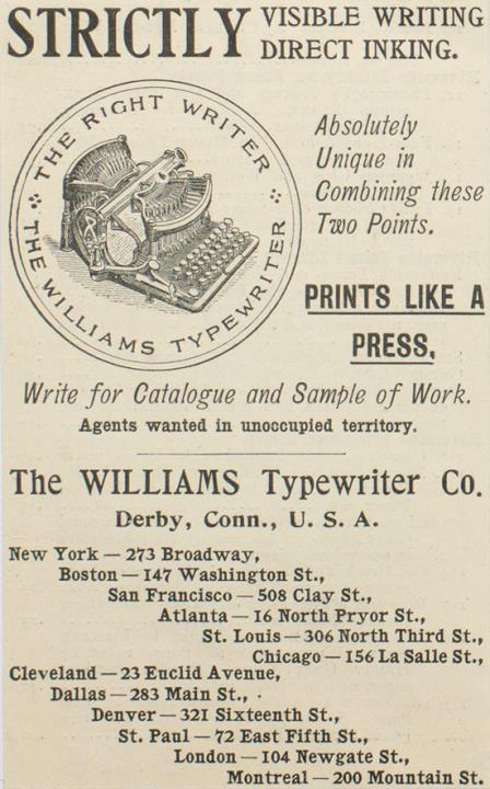 Strictly visible writing direct inking. Williams Typewriter
