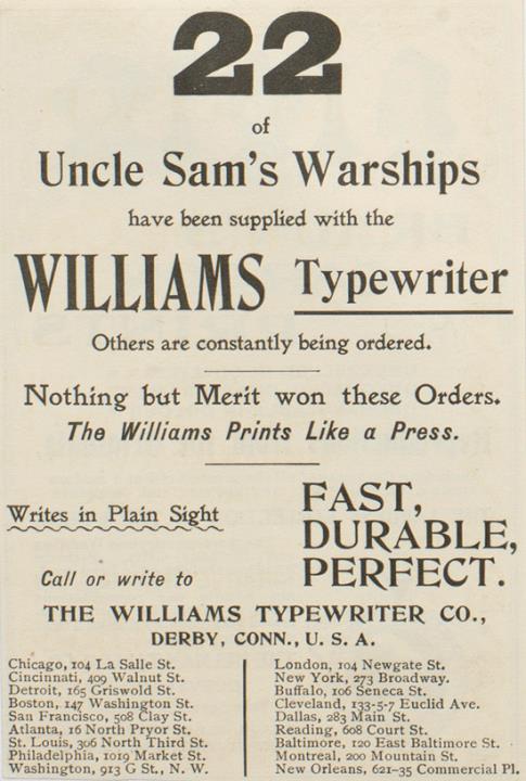 22 of Uncle Sam's Warships have [...] Williams Typewriter