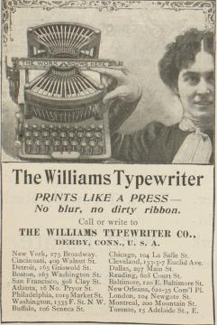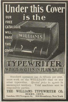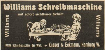 Werbeanzeige für Schreibmaschine Williams monochrom