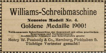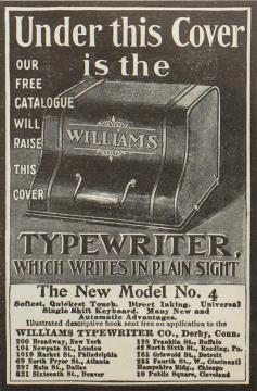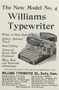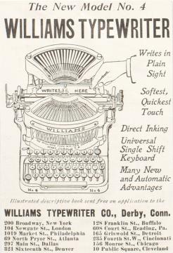 Werbeanzeige für Schreibmaschine Williams 4 monochrom