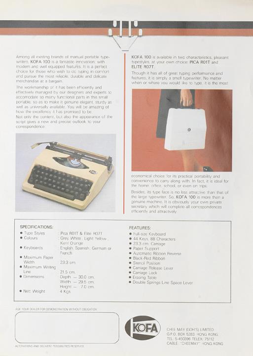 Prospekt für tragbare Schreibmaschine Kofa 100
