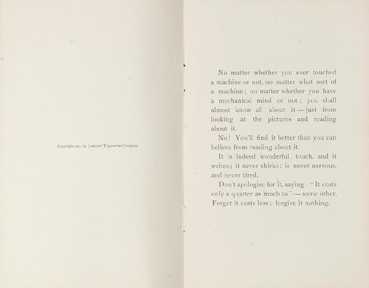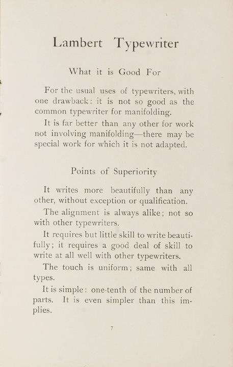 Next to literature on the history of technology, of the typewriter and the office, the Archive holds patent letters, textbooks and instruction manuals as well as historical postcards, letters, photographs and various kinds of advertising (leaflets and brochures, advertising stamps, newspaper ads, posters and signs, promotional gifts).