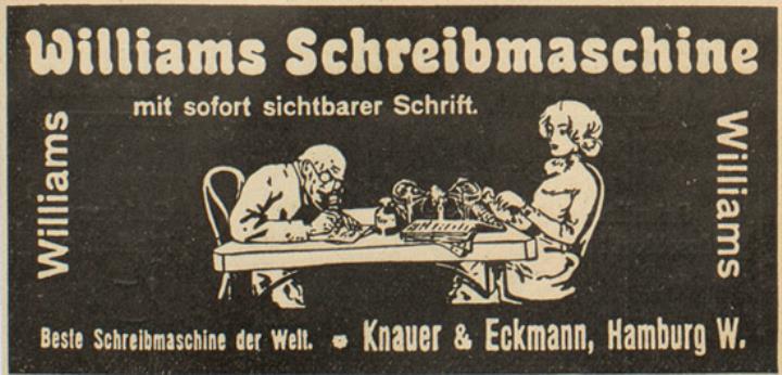 Werbeanzeige für Schreibmaschine Williams monochrom, zwei Exemplare