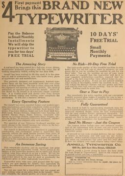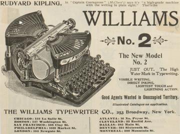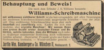 Werbeanzeige für Schreibmaschine Williams monochrom