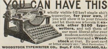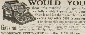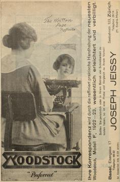 Werbeanzeige für Schreibmaschine Woodstock monochrom