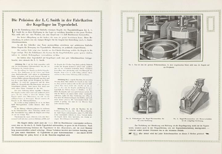 Faltprospekt für Typenhebelkugellager der Schreibmaschine L. C. Smith & Bros.