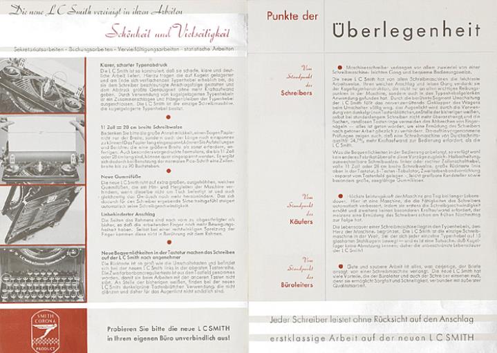 Faltprospekt für Schreibmaschine L. C. Smith 8/11 Nr. AS 280