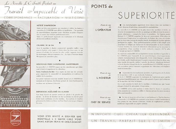 Faltprospekt für Schreibmaschine L. C. Smith 8/11 Nr. AS 280 French