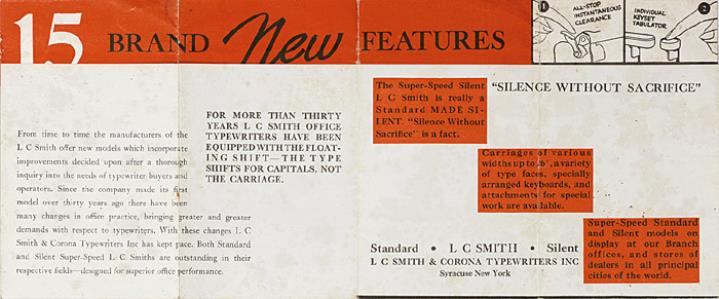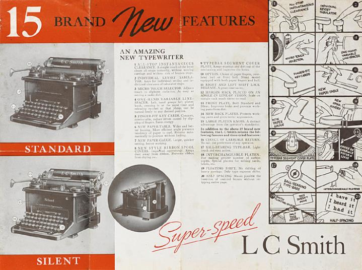 Faltprospekt für Schreibmaschine L. C. Smith Super-Speed Nr. AS 320 100M