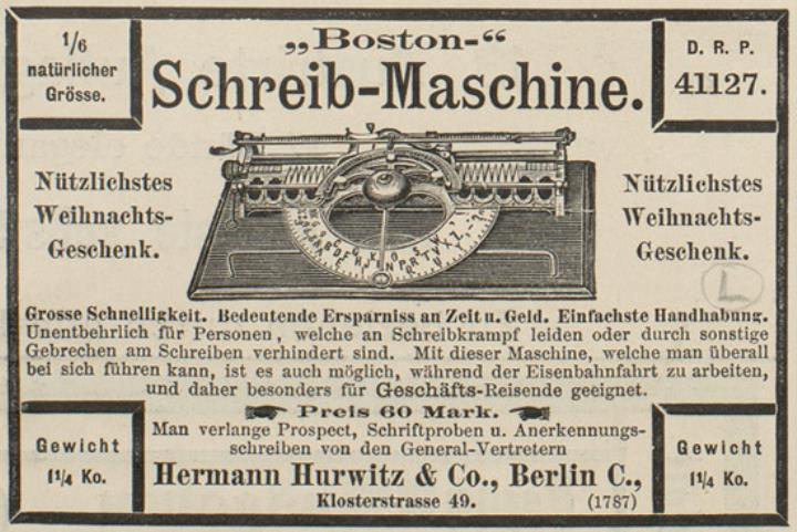 Boston-Schreib-Maschine. Nützlichstes Weihnachtsgeschenk